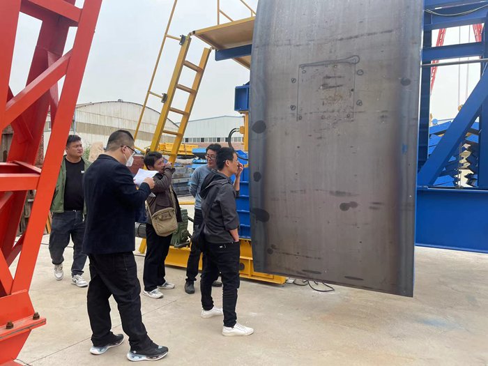 2023年4月13日,中鐵六局集團(tuán)有限公司沈陽地鐵一號線1標(biāo)項(xiàng)目經(jīng)理部檢查驗(yàn)收專家組蒞臨我廠,對訂購我廠生產(chǎn)的二襯臺車進(jìn)行檢查測量驗(yàn)收。在為期一天的驗(yàn)收工作中,通過聽取現(xiàn)場匯報(bào),實(shí)地測量,調(diào)試、繪圖3D模擬,對我廠的二襯臺車進(jìn)行了細(xì)致的檢查驗(yàn)收。